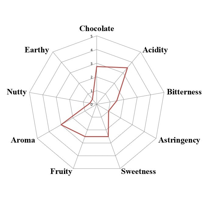 The aroma starts off with lovely light chocolate and bright high notes. They put me in mind of various lively fruits like plum (Japanese style) and lychee.  The chocolate is tangy and bright.  No surprise.  It is a very clean citric acid brightness.  There is a hint of fresh bell pepper (very subtle), soft persimmon and a round milk chocolate like softness.  The delicate bitterness present (combined with the acidity) rather puts me in mind of a lightly roasted 3rd wave cup of unsweetened coffee. I describe it that way as it really isn't mocha which I think of as heavier with more body. There is a little malty sweetness that you even get from certain white breads.  Again, that round, soft mouth feel plays over and over that can you think you have a bright milk chocolate.